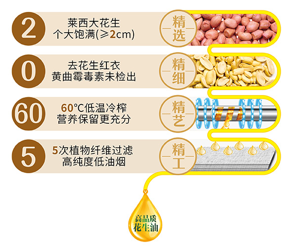 全程低溫處理,花生細胞結構保留完好,雜質少,不易產生油煙。